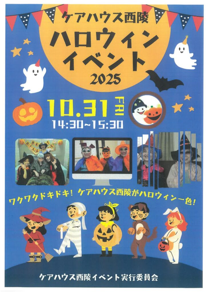 令和7年10月31日、ケアハウス西陵にてハロウィン仮装パーティーが行われました。