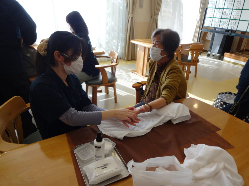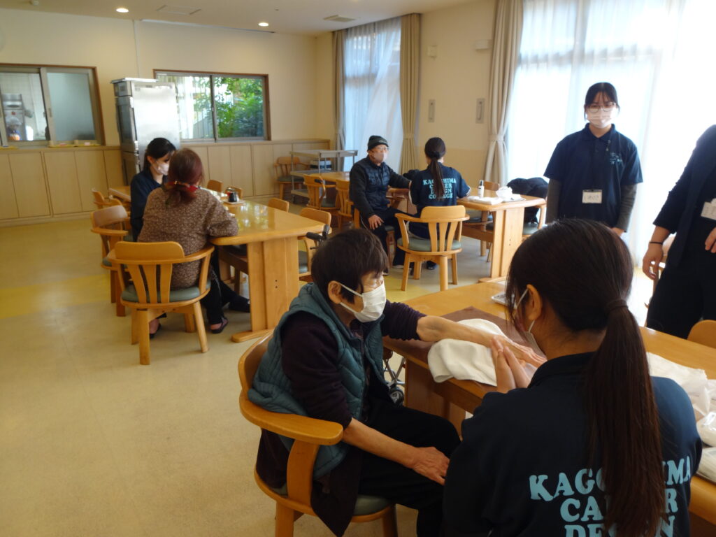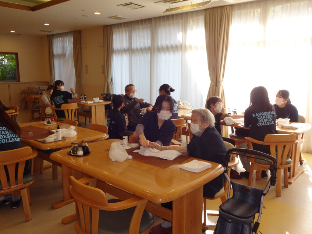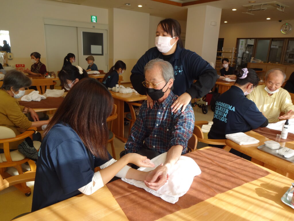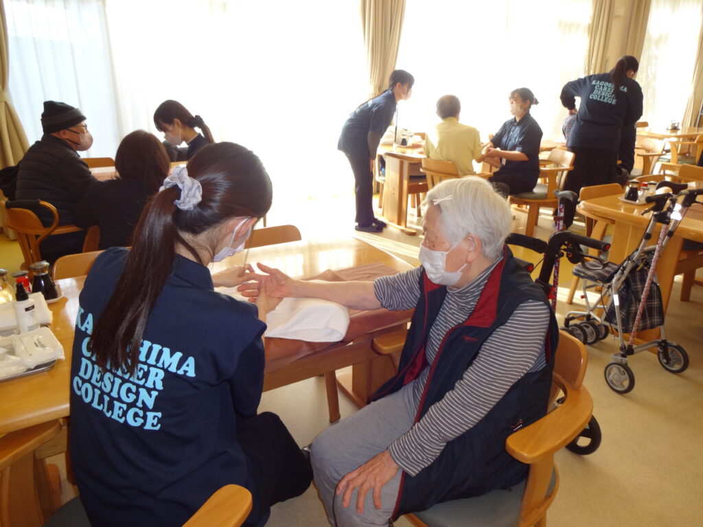 2025/12/18 R7.12.17、鹿児島キャリアデザイン専門学校の生徒(医療福祉秘書科2年生)さんがハンドマッサージに来てくださいました。 入居者の皆さん、ハンドマッサージ後は笑顔で帰られ喜ばれていました。また来てほしいとの声も聞かれていました。ありがとうございました、是非、また来てください!!お待ちしております!!