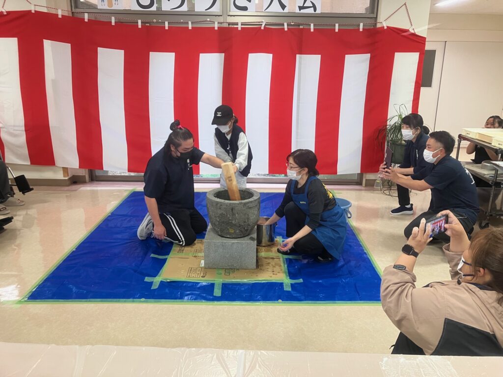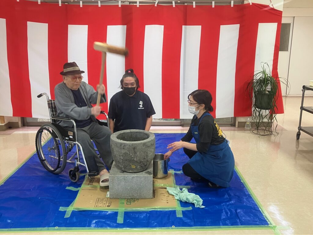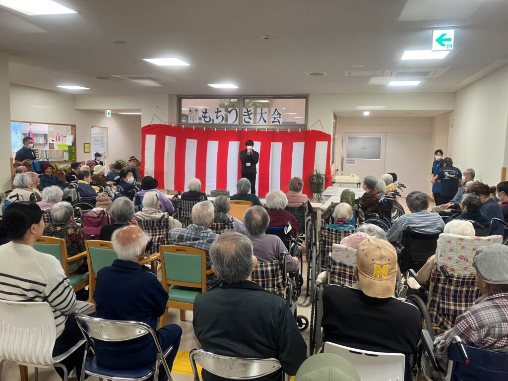 12/14に龍郷の里にてもちつき大会が開催されました。 職員、入居者様、ご家族、皆が集まり素敵な思い出が沢山できました