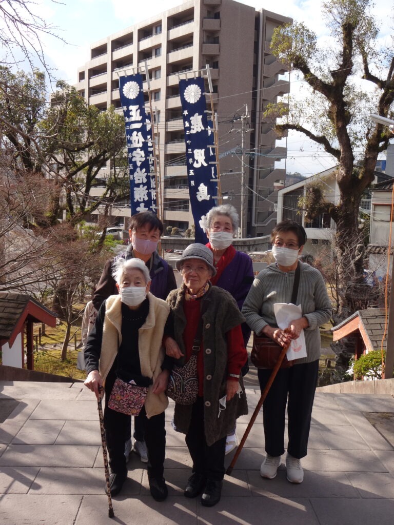 2026/01/08 R8.1/7&1/8に三社参りへ行ってきました。 照国神社→護国神社→鹿児島神社を回り、鹿児島神社で下車し、お参りして来ました。 三社参りをし、今年一年の健康を祈願して参りました。参加された皆様、寒空の中でしたが、人の混雑を避けて無事に参拝がすることができました。入居者皆様が、今年一年健康で過ごせますように。