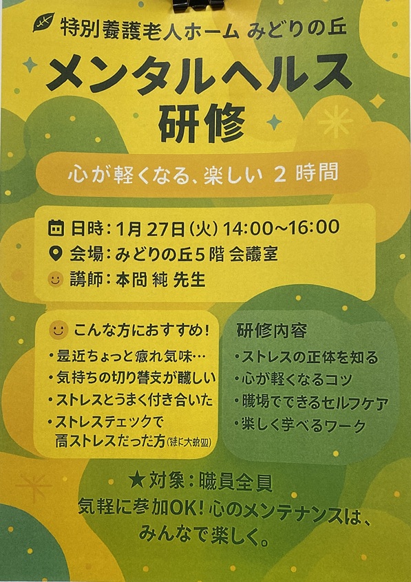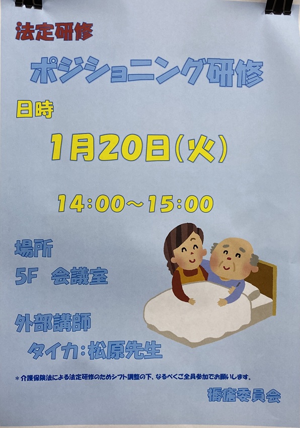 1月は「ポジショニング研修」と「メンタルヘルス研修」を実施します。