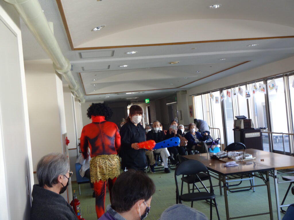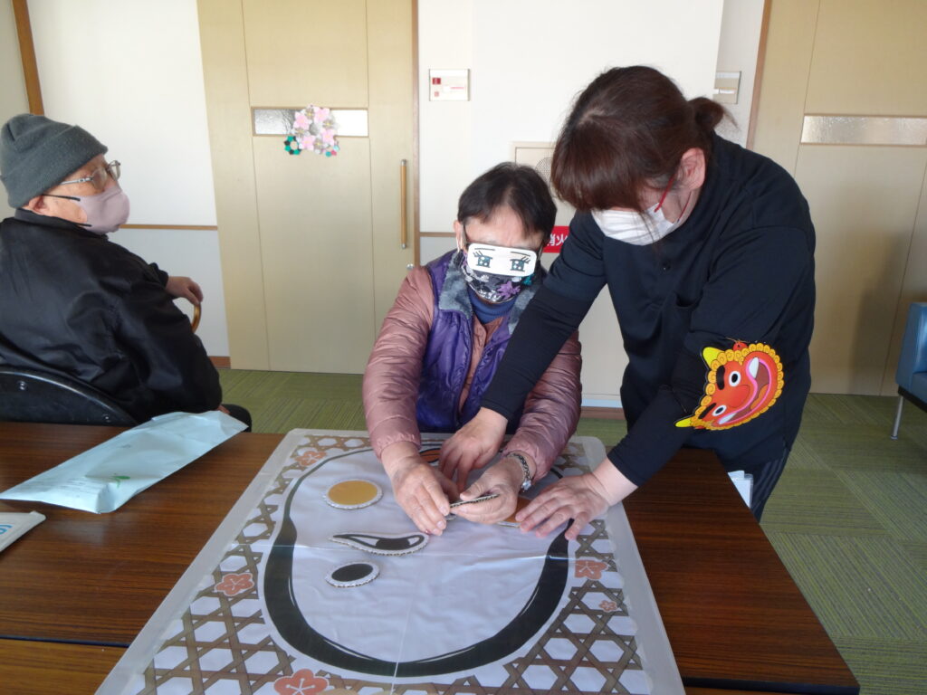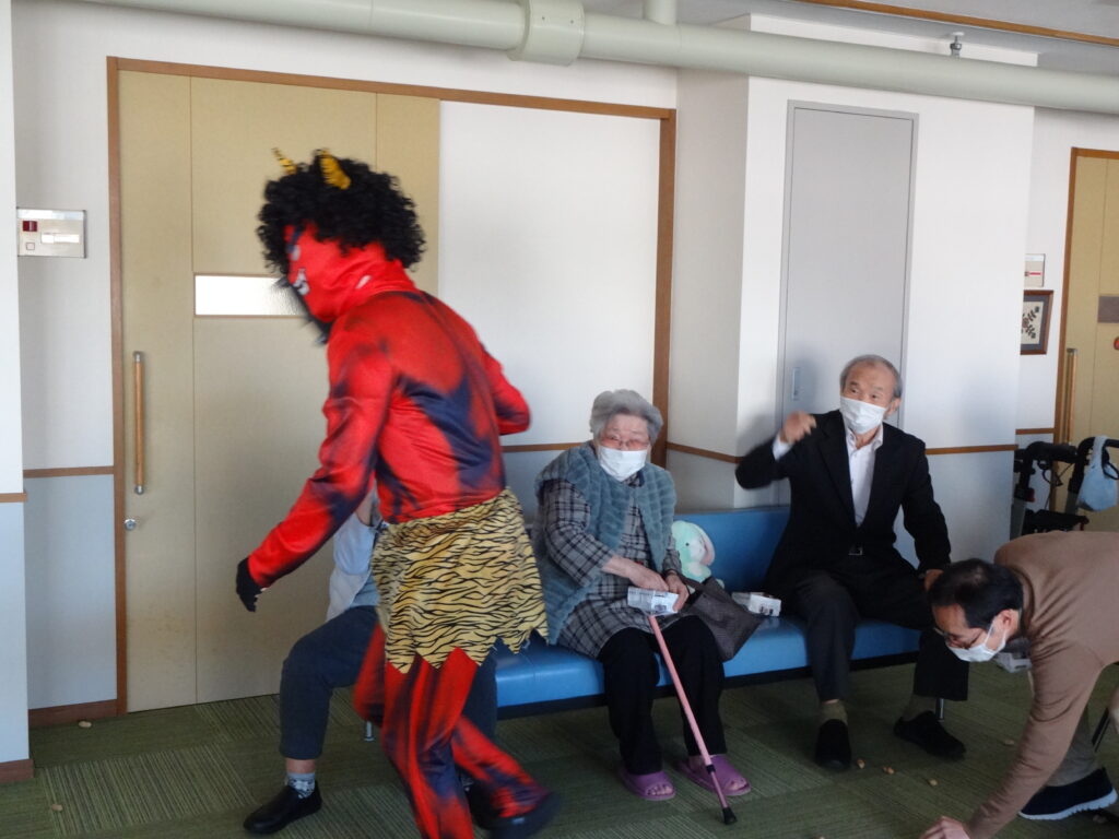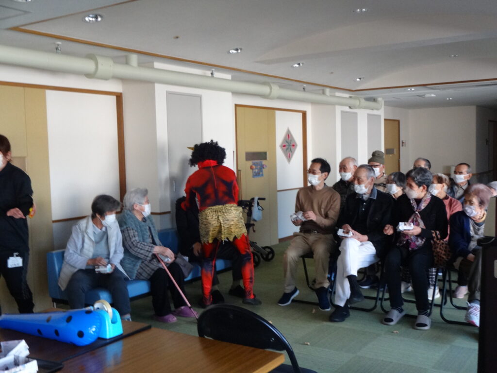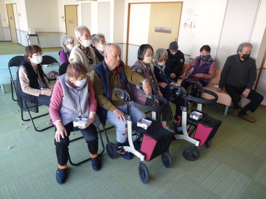 2026/02/03 R8.2.3、節分大会(豆まき等)を行いました。 ケアハウス西陵では、初めての試みとして、節分の日に、入居者皆さんで、豆まき大会を開催しました。豆まきの踊りをしたり、福笑いをしたり、お菓子を引いて今年の運勢を占ったりと、皆さん笑顔も見られ、楽しまれていました。ちなみに、節分は、季節を分ける日とされており、節分の翌日は立春にあたります。節分に悪いものを追い出し、縁起の良いものを食べて、新しい季節を迎えるための行事です。とはいえ、まだまだ寒い日が続きます。入居者の皆様も、健康に気を付けてお過ごしください。