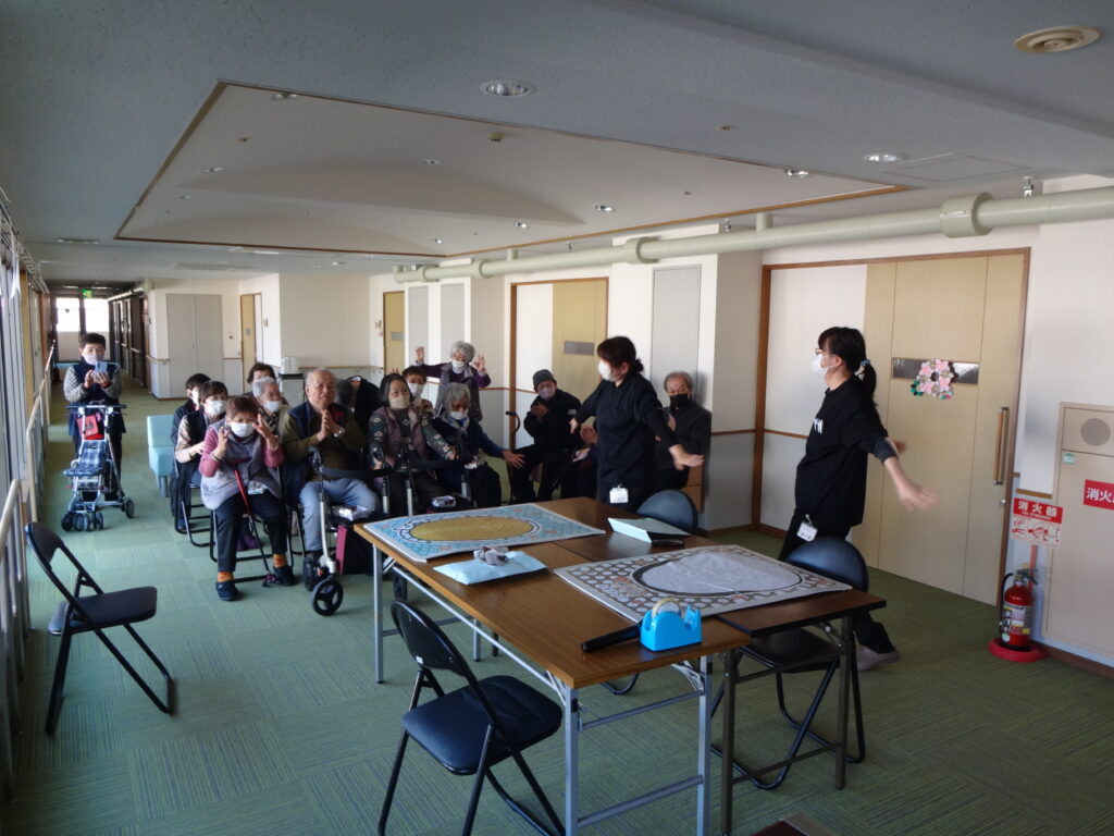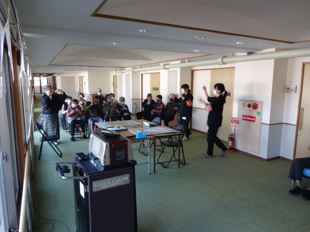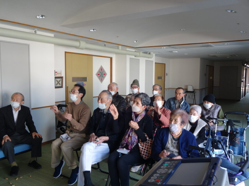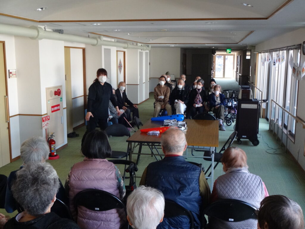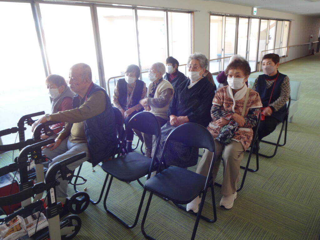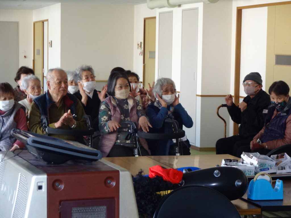2026/02/03 R8.2.3、節分大会(豆まき等)を行いました。 ケアハウス西陵では、初めての試みとして、節分の日に、入居者皆さんで、豆まき大会を開催しました。豆まきの踊りをしたり、福笑いをしたり、お菓子を引いて今年の運勢を占ったりと、皆さん笑顔も見られ、楽しまれていました。ちなみに、節分は、季節を分ける日とされており、節分の翌日は立春にあたります。節分に悪いものを追い出し、縁起の良いものを食べて、新しい季節を迎えるための行事です。とはいえ、まだまだ寒い日が続きます。入居者の皆様も、健康に気を付けてお過ごしください。