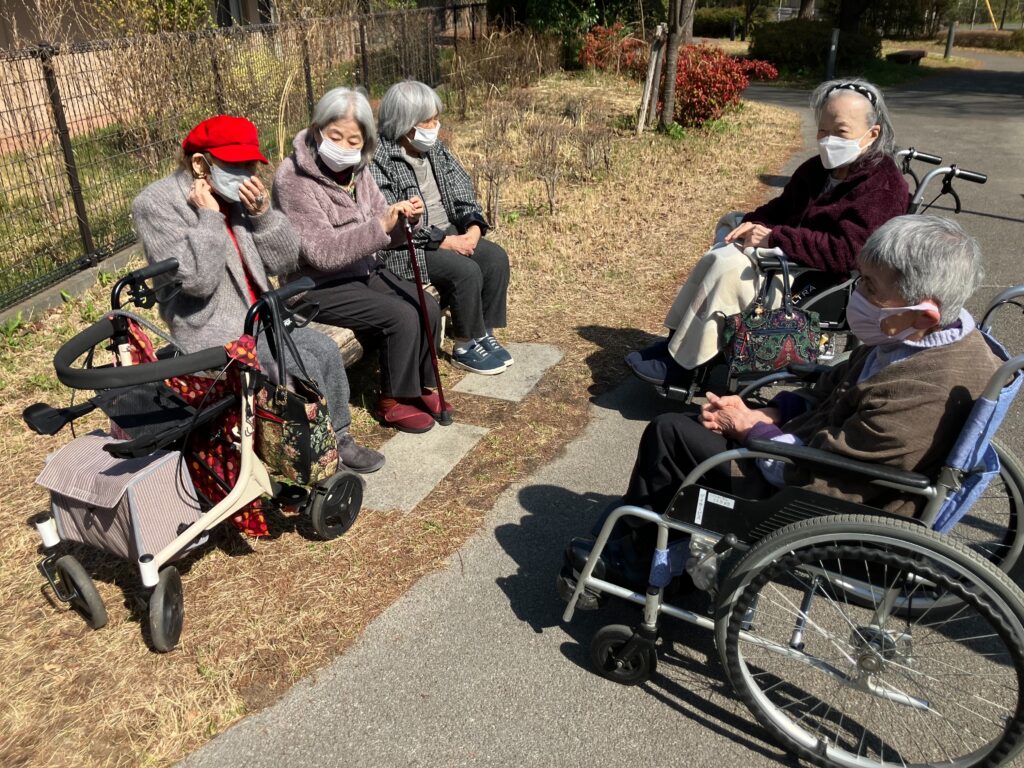 2026/03/21 ✨🌸お花見散歩🌸✨ みどりの丘周辺の桜が少しずつ花開きはじめてきました。 お天気が良く暖かいのでみんなで公園までお散歩に行きました。 皆様、日向ぼっこしながらおしゃべりに花が咲いていらっしゃいました🎵